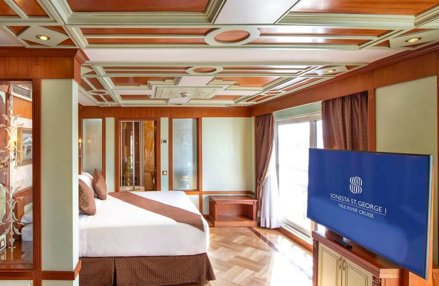 El Sonesta St. George Nile Cruise es un crucero de lujo 5 estrellas. Con un estilo francés distintivo de “fin de siglo”, este elegante crucero todo-suites comenzó a operar en 2006. El Sonesta St. George I ofrece alojamientos lujosos que brindan la máxima comodidad, elegancia y diseño, con 47 cabinas deluxe, 9 suites presidenciales y una suite real, todas con muebles de alta calidad y comodidades de lujo. Durante tu viaje, visitarás: el Templo de Karnak, el Templo de Luxor, el Valle de los Reyes, el Templo de la Reina Hatshepsut en Deir El Bahari, los Colosos de Memnón, el Templo de Horus en Edfu, el Templo de Kom Ombo, el Obelisco Inacabado, el Templo de Filae y la Alta Presa.